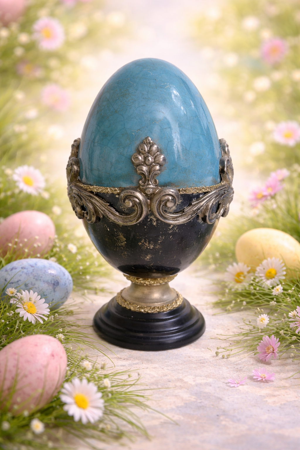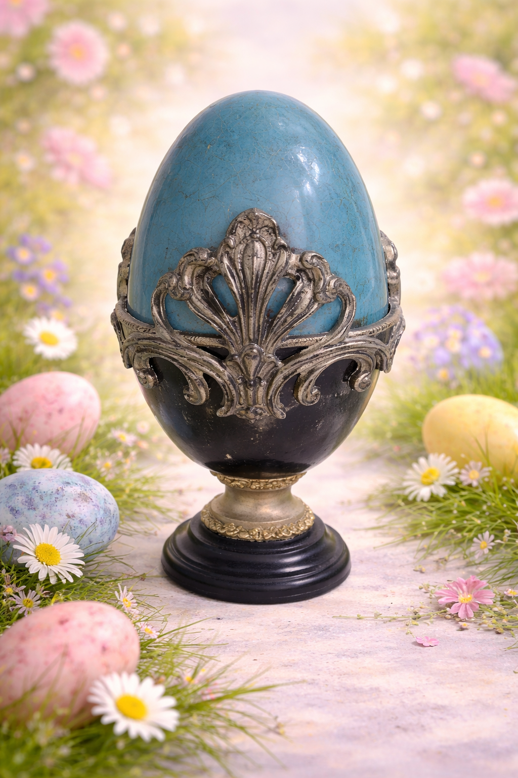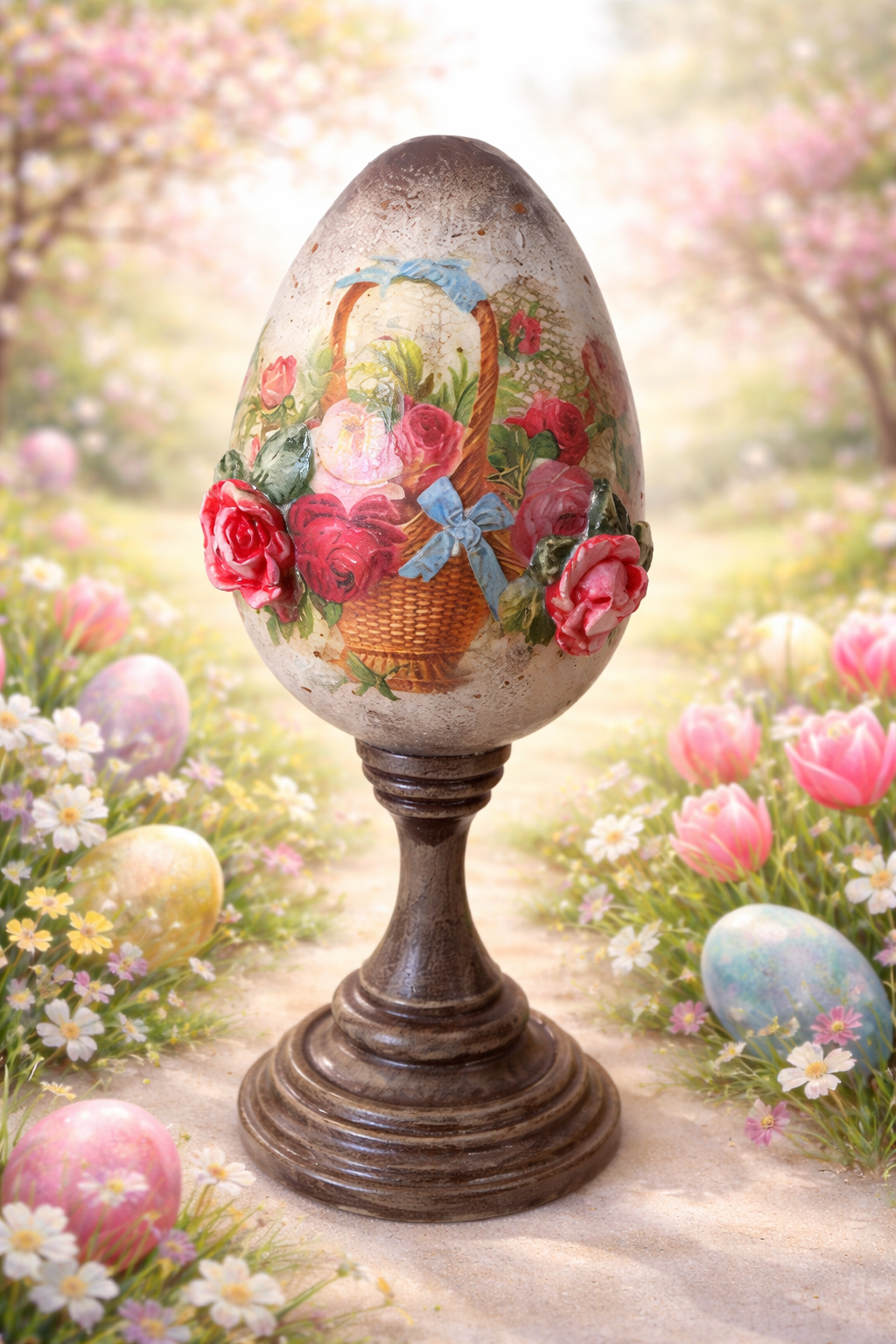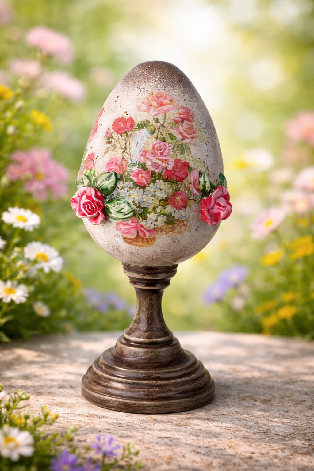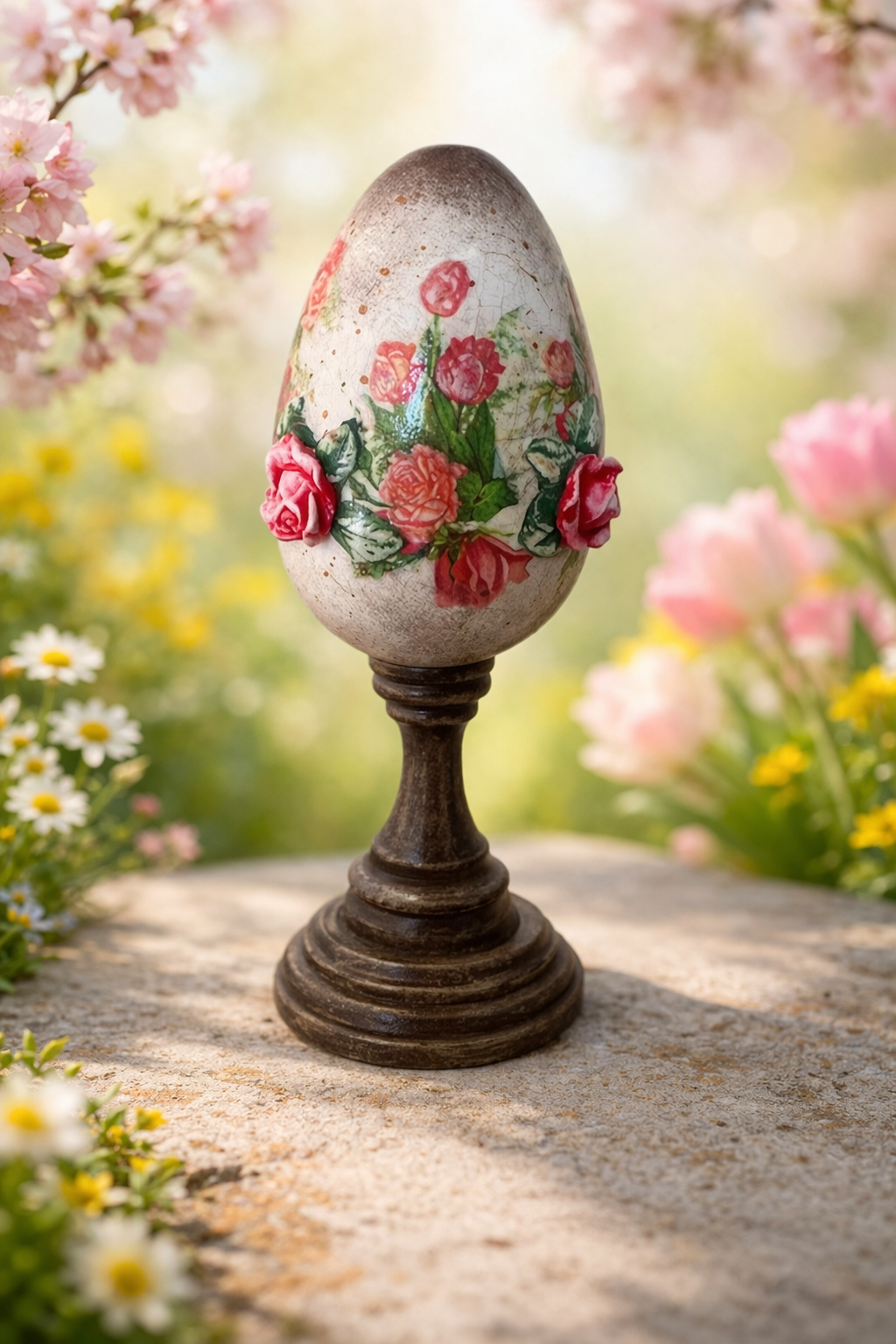 Urocza pisanka z różyczkami na nóżce może być piękną ozdobą świątecznego stołu lub nietuzinkowym elementem świątecznego wystroju.