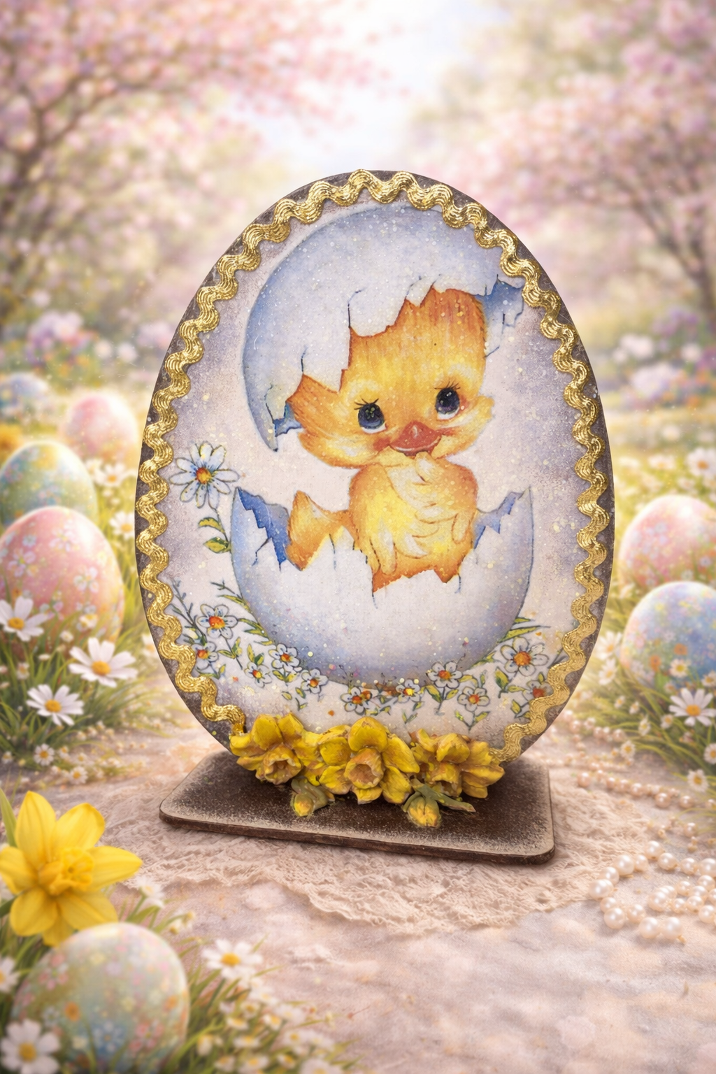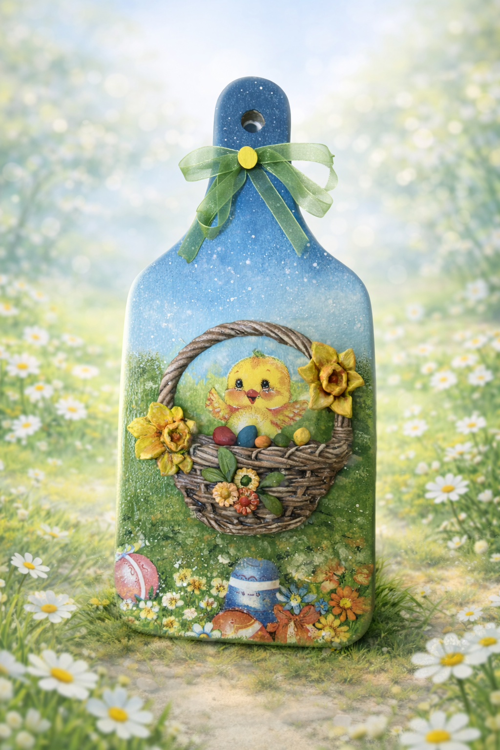 Panel – deseczka świąteczna w żywych wiosennych kolorach. Deseczka wykonana w technice 3D. Dekoracja wesoła i orzeżwiajjąca wnętrze.